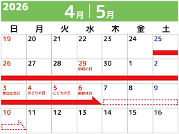 ※昭和の日(4/29)。憲法記念日の振り替え休日(5/6)は、祝日ですが、休まず営業いたします。